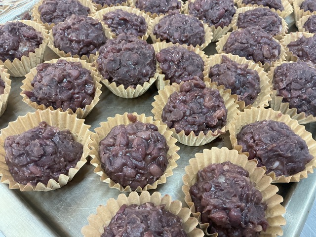 小豆も乾物を仕入れて圧力鍋で炊くところから作りました。